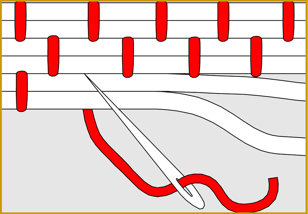 Determining the size of the goldthread used required careful measuring and counting on a picture of the sample (Figure 11). On average, 29 parallel goldthreads are needed to cover a centimetre. Experiments with Stech 70/80 showed that 29 parallel threads only covered 0.9 cm. Repeating the experiment with Stech 80/90 resulted in 30 parallel threads covering a centimetre—close enough.