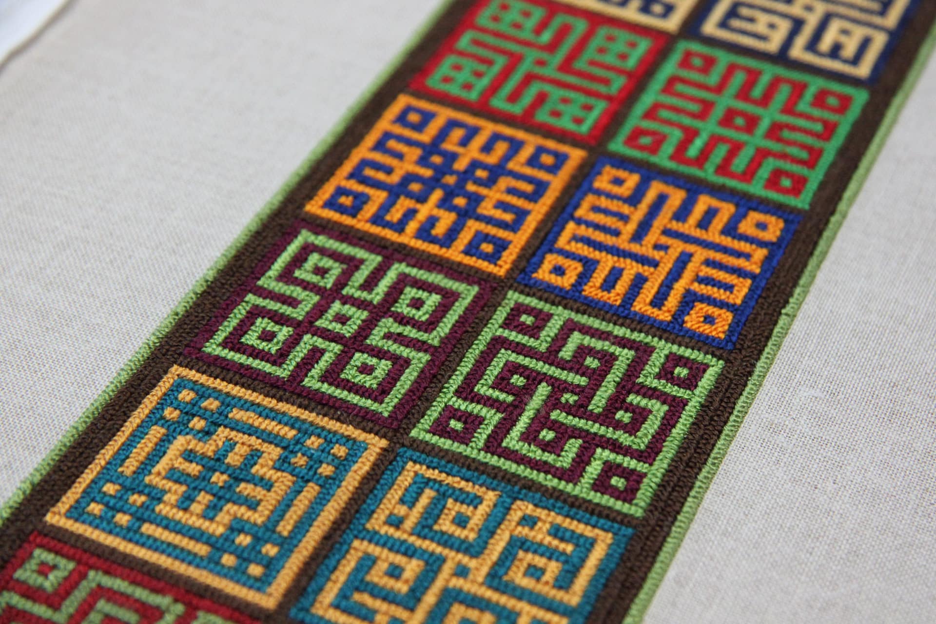 To help you master this versatile stitch yourself, charts of 36 geometric patterns found on one of the chasubles are included. Four technical drawings will allow you to master this stitch quickly, regardless of the direction you are working in. All you need is an even-weave linen (I used 40 ct) and filament silk (I used DeVere Yarns #60).