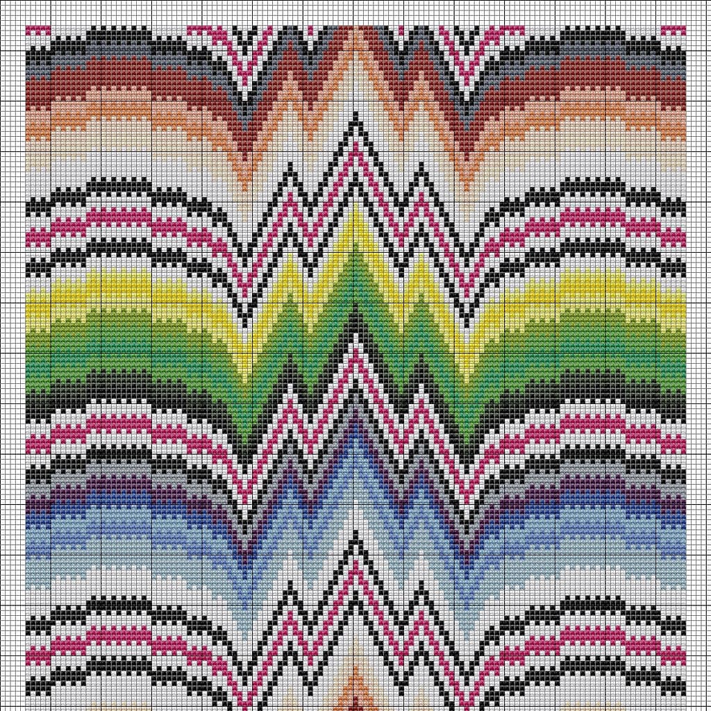 Museo d’Arte Sacra in San Gimignano in Italy. I’ve charted the pattern as a cross-stitch pattern, but the original is worked in Gobelin stitch over four canvas threads.
